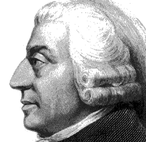 Адам Смит (1723-1790). Он — шотландец, в молодости переживший последнее восстание горных кланов и окончательное присоединение Шотландии к Англии. Из состоятельной семьи, получил прекрасное образование — и домашнее, и университетское. Начал преподавать в Эдинбургском университете, ведя курс «естественного права» — тогда он включал в себя широкий спектр наук об обществе